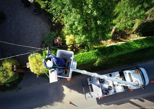 • homme dans une nacelle qui intervient en électricité